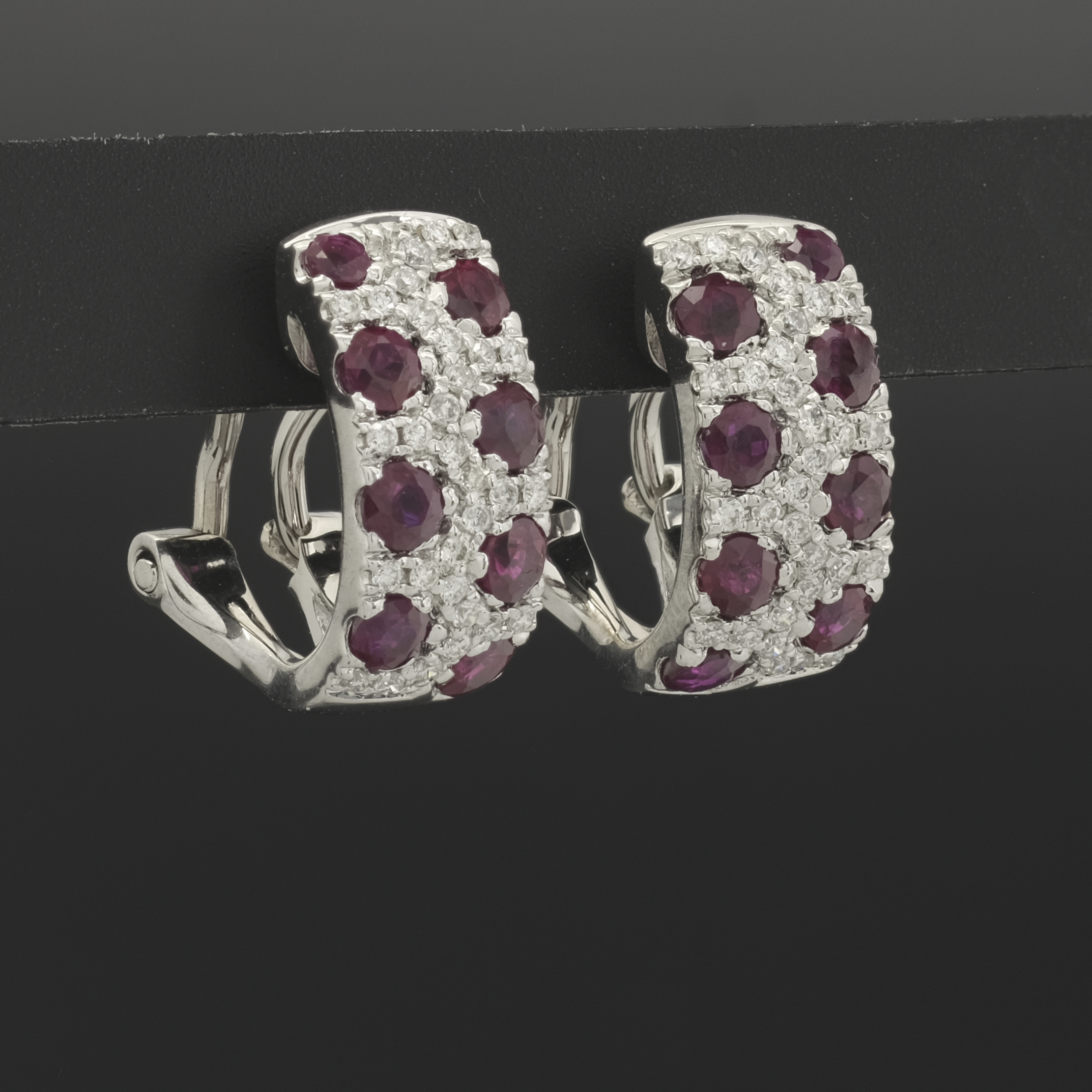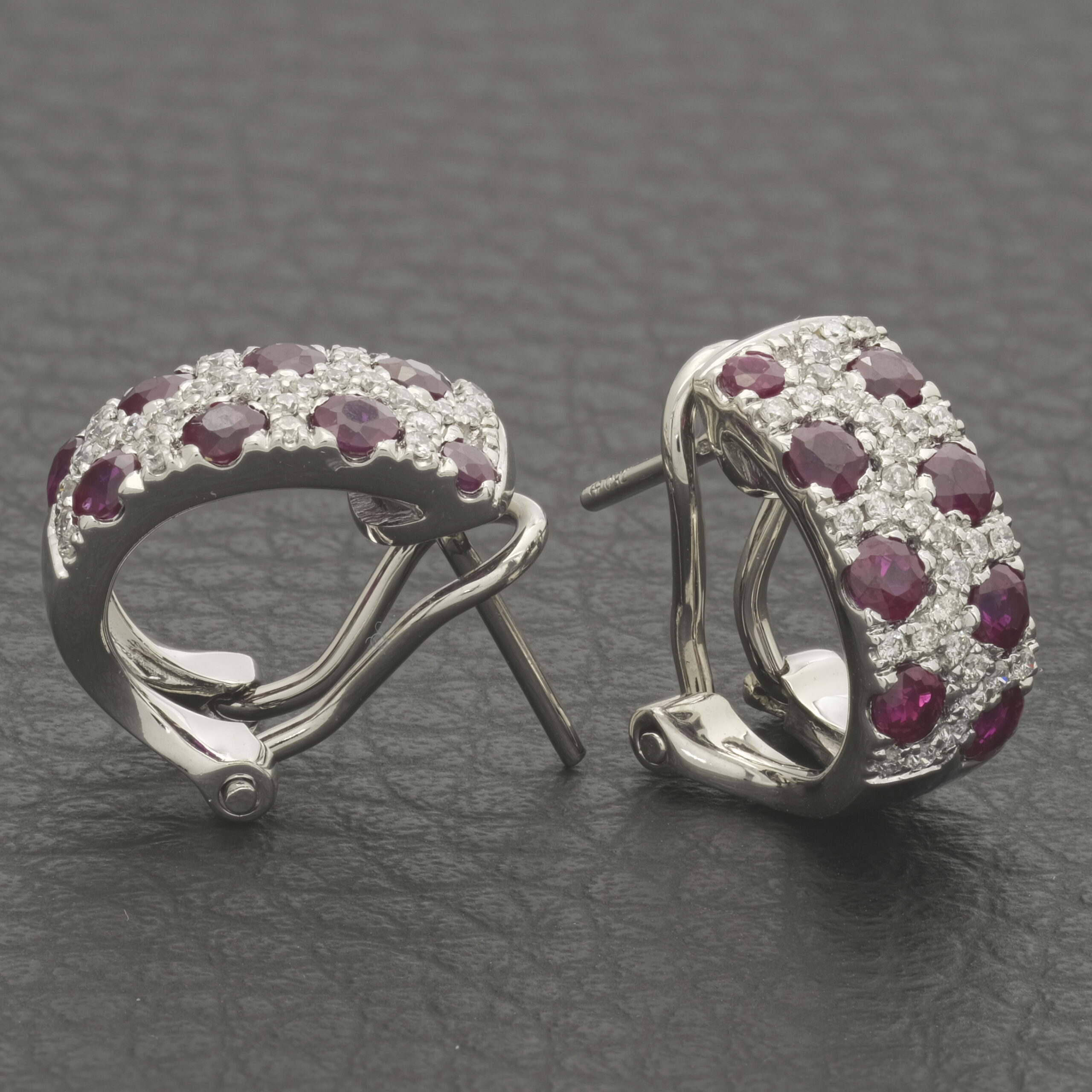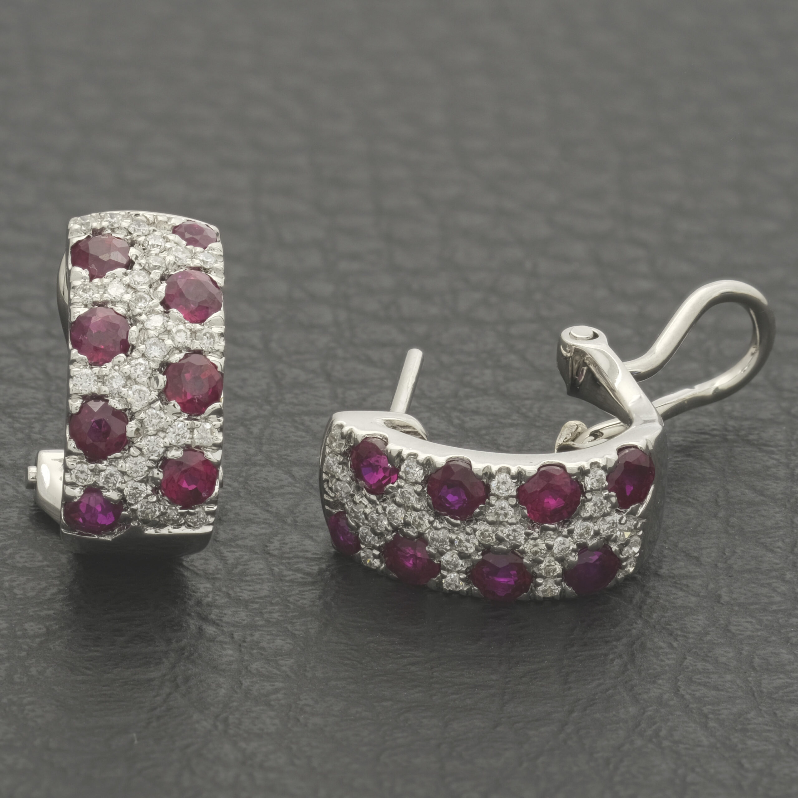 Pre-owned Ruby and diamond clip earrings are the epitome of timeless elegance and luxury. These exquisite accessories feature a harmonious blend of radiant gold, fiery rubies, and sparkling diamonds, creating a captivating contrast of colours and textures. These earrings are crafted in 18ct white gold. Accentuating the design, the diamonds bring brilliance and sophistication, catching the light with every movement. Designed with a clip-on mechanism, these earrings offer comfort and versatility, making them suitable for both pierced and non-pierced ears. These rubies have a total carat weight of 0.70ct, whilst the diamonds have a total carat weight of 0.30ct. Perfect for special occasions or as a statement piece, ruby and diamond clip earrings are a stunning addition to any jewellery collection.