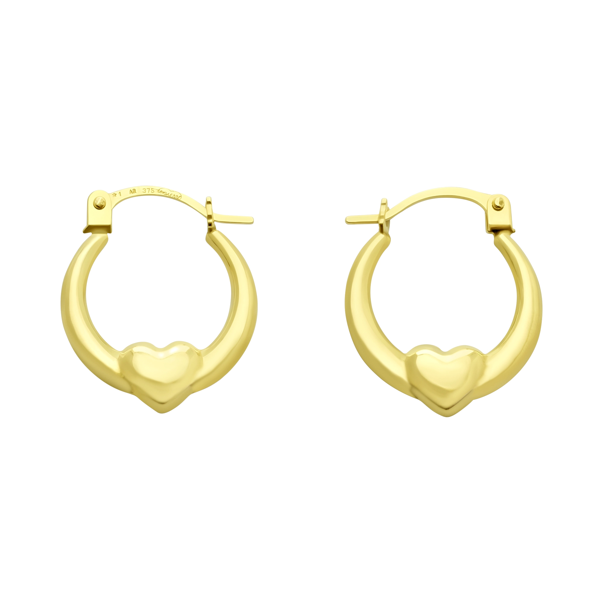 A beautiful pair of pre-owned 9ct yellow gold heart creole earrings. These heart creole earrings would make a wonderful accessory for all occasions.