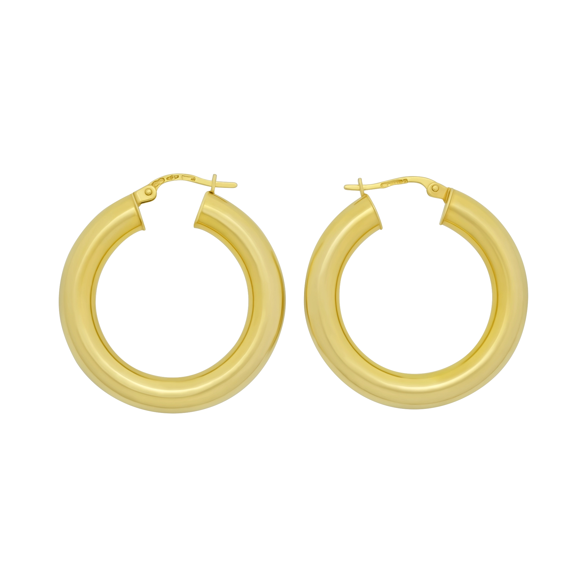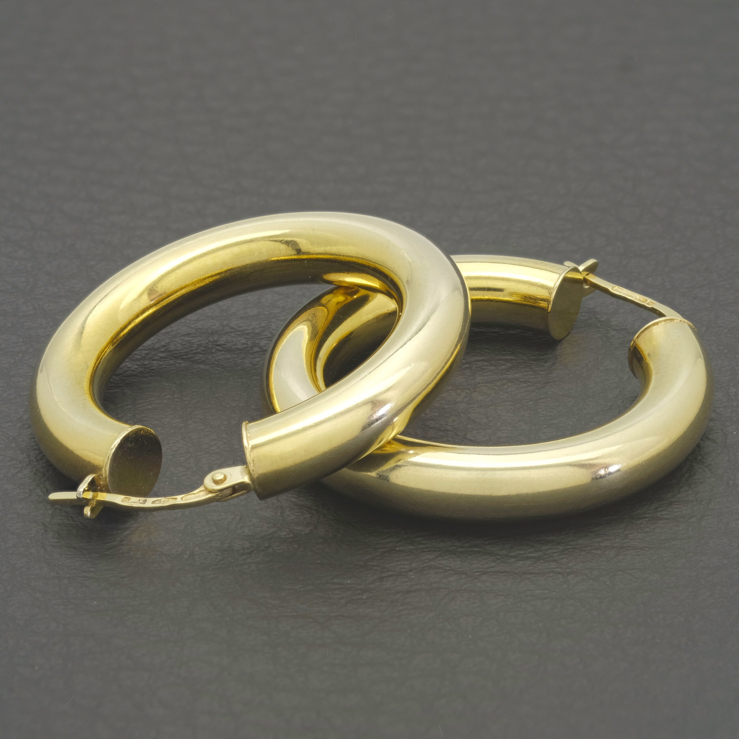 A beautiful pair of hollow pre-owned hoop earrings crafted from 9ct yellow gold. These earrings fasten with a hinge snap closure for secure and comfortable wear. These would make a wonderful accessory suited for all occasions. Measuring 20mm and 5mm wide.