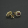A stunning pair of pre-owned 18ct yellow gold diamond and ruby cluster earrings. Each earring features over ten diamonds surrounding an ruby stone. The total carat weight of the diamonds is 0.70ct whilst the total carat weight of the rubies is 1.00ct. These earrings are perfect for everyday wear and fasten with push on backs for extra security.
