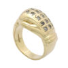 A knockout pre owned 9ct yellow gold cubic zirconia boxing glove ring. The ring has a plain polished band with a single glove decorated with fifteen cubic zirconia gemstones for that extra bling.
