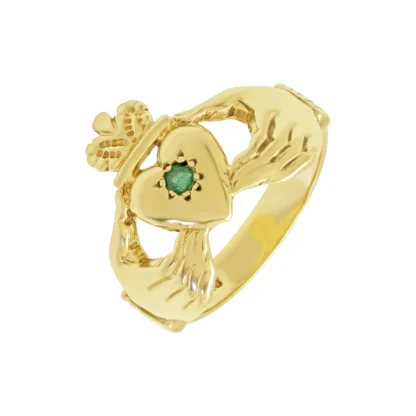 9ct Yellow Gold Green Gemstone Claddagh Ring