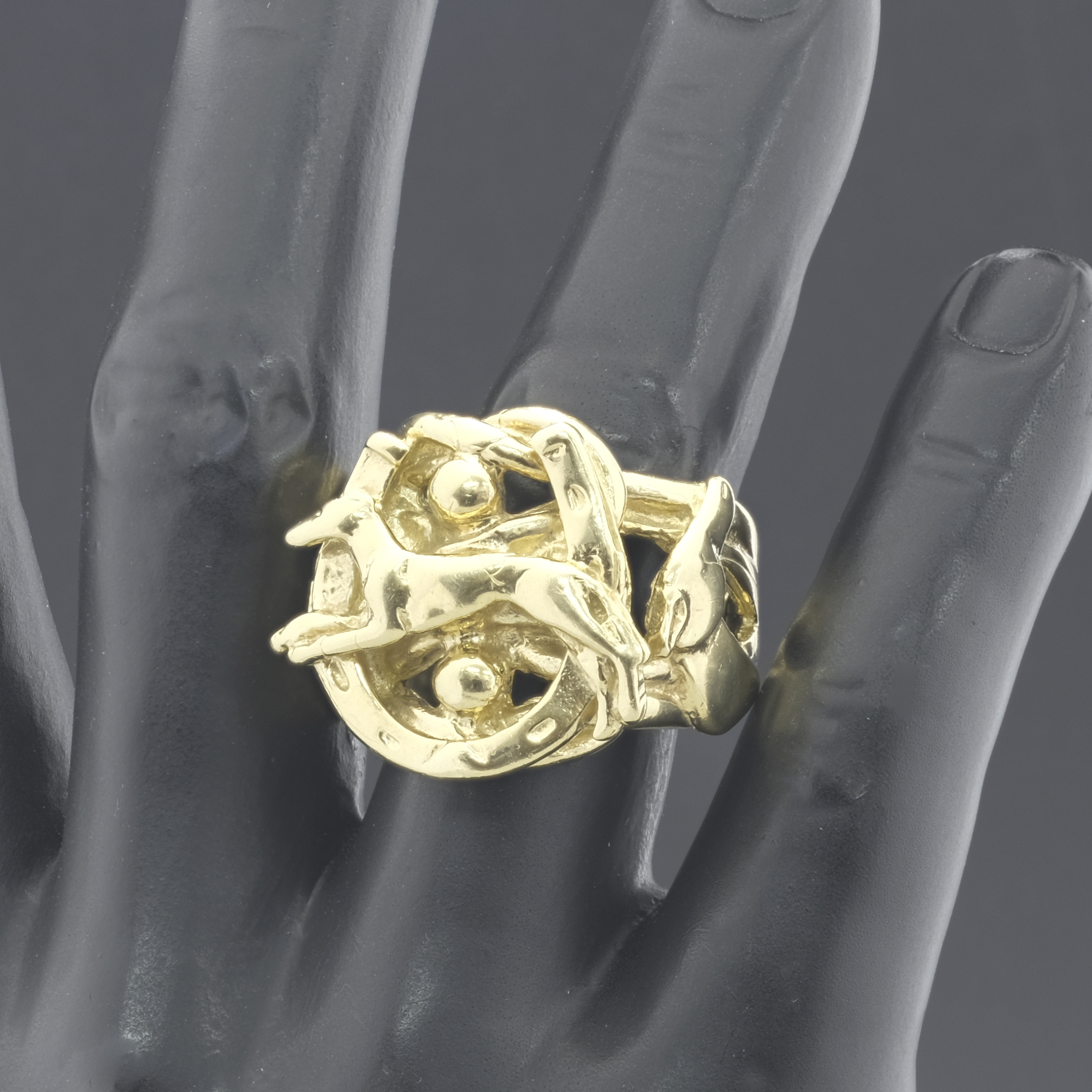 This pre-owned solid gold horseshoe ring crafted from 9ct yellow gold is a stylish and symbolic piece of jewellery. Whether worn as a statement piece or a subtle charm, a horseshoe ring blends timeless elegance with a touch of personal significance, appealing to those who value both fashion and symbolism.