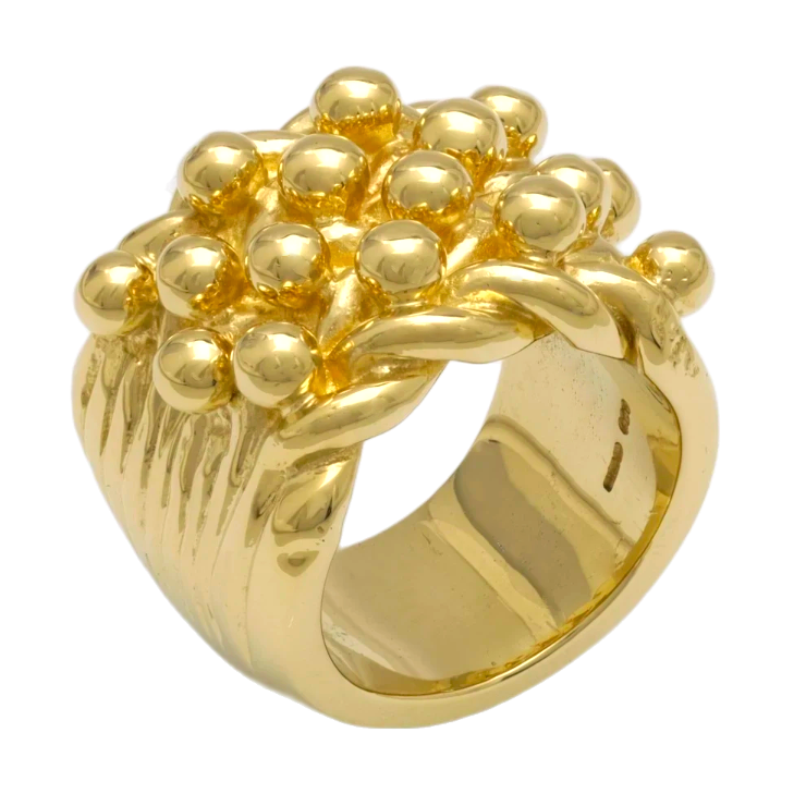 A pre-owned, 9ct yellow gold solid keeper ring features four rows and a rope on each edge. Being a classic design you can wear this keeper for any occasion. This ring weighs 66.8g.