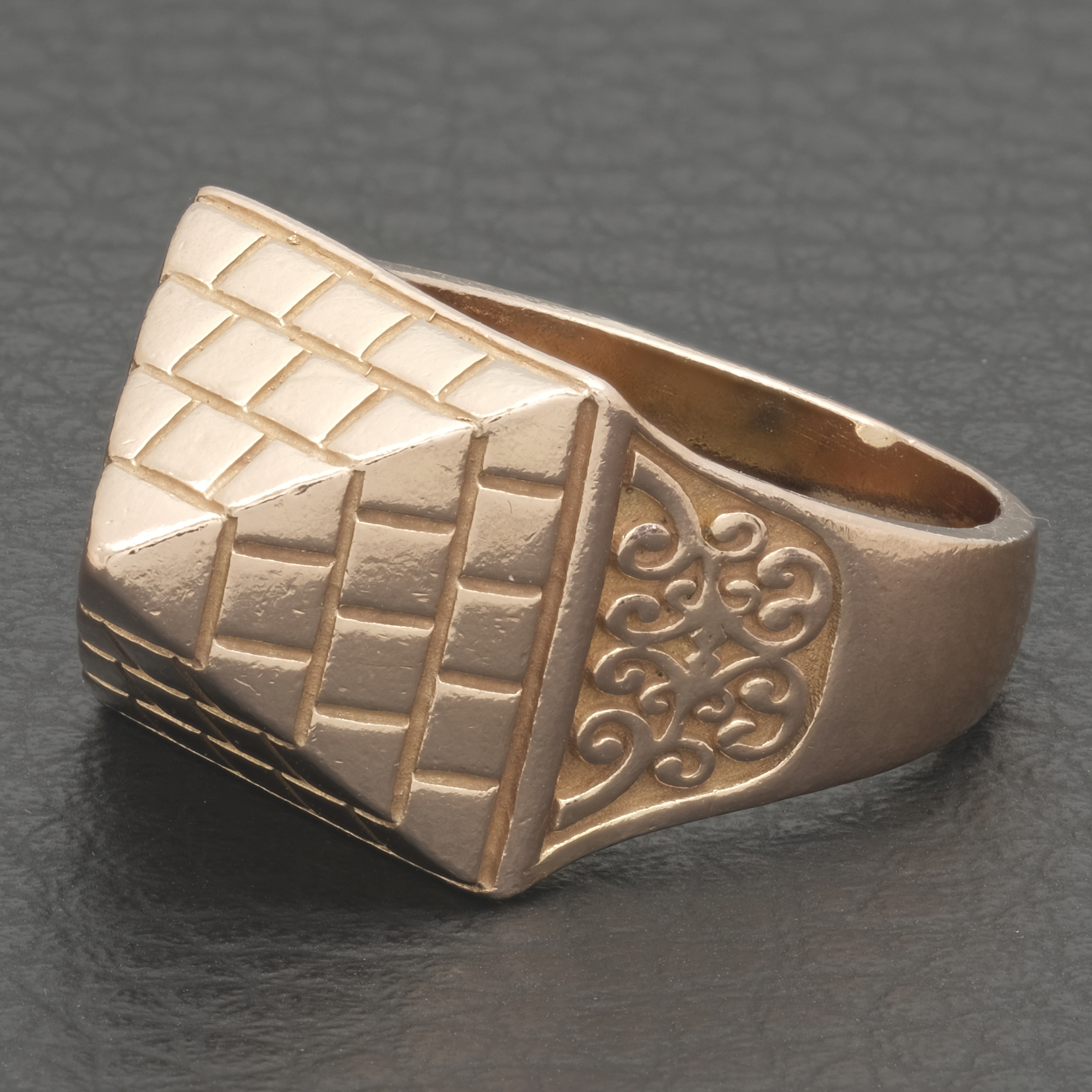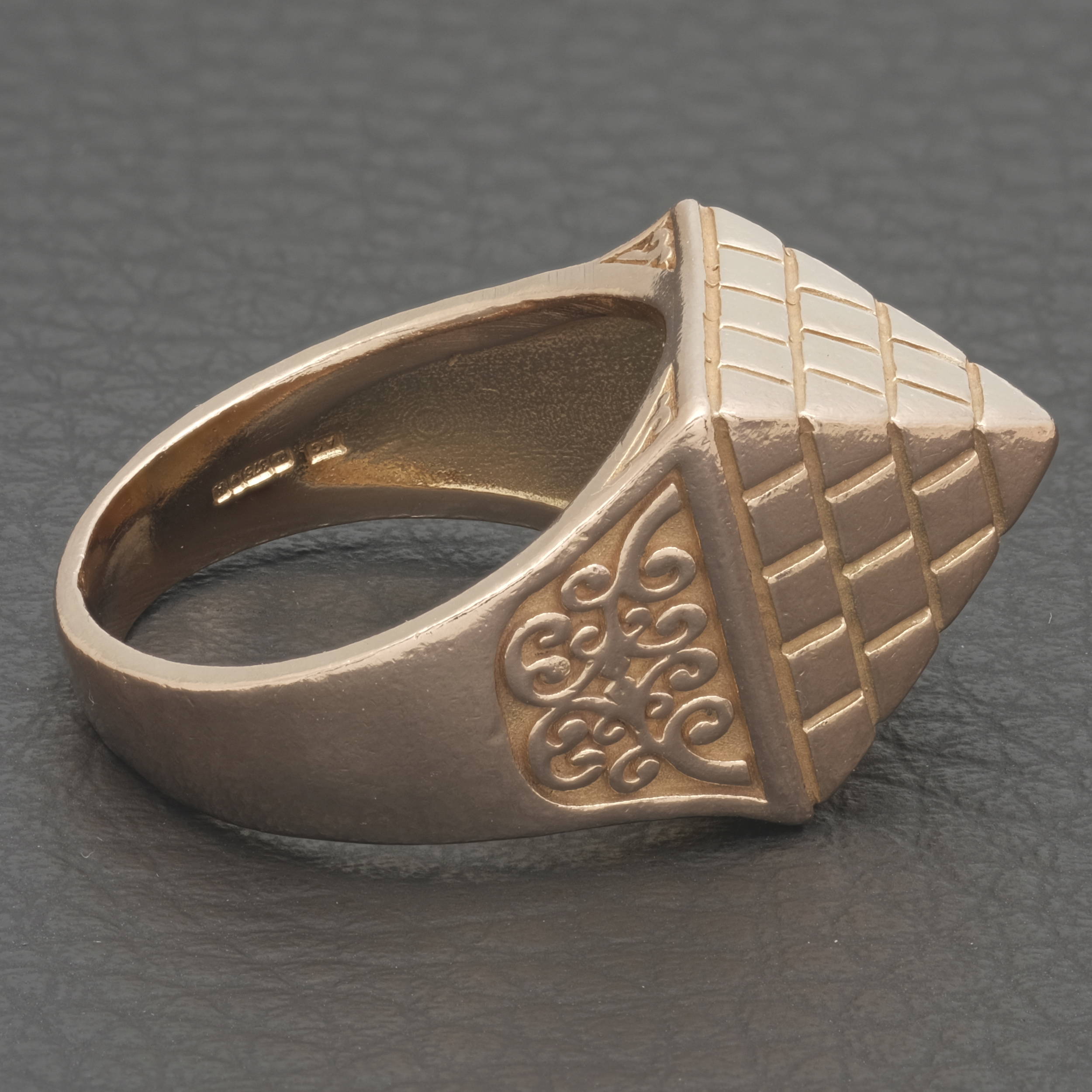 A pre-owned 9ct rose gold pyramid ring. Made from 9ct rose gold this is perfect for everyday wear. With a square base going rose gold brick by rose gold brick all the way to a point at the top. A large raised ring is sure to make a statement.