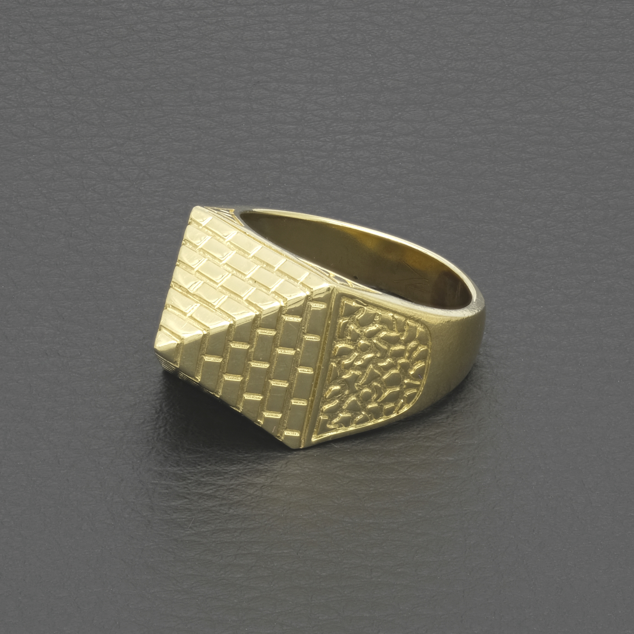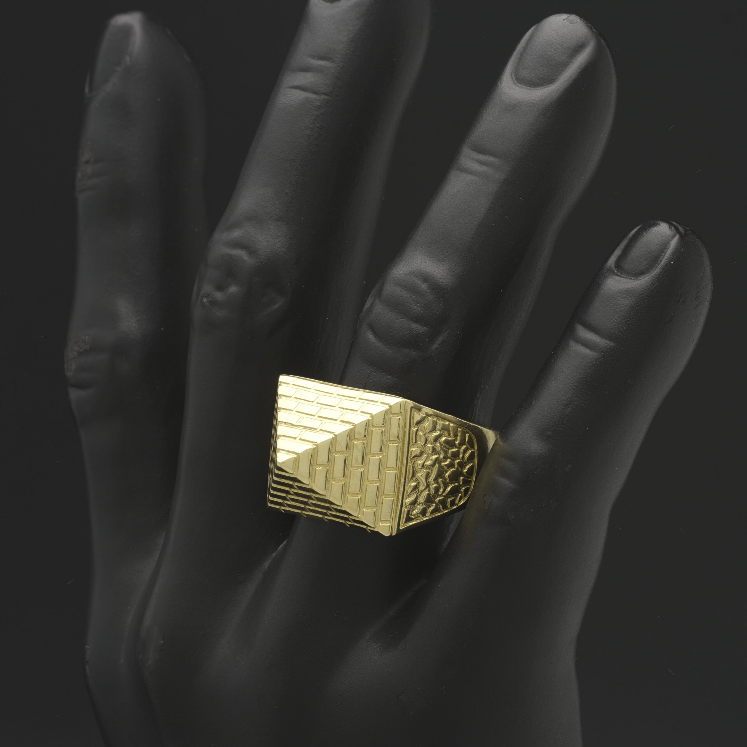 A pre-owned stunning 9ct yellow gold pyramid ring. Weighing 15.2g giving you that extra bit of weight to your ring. This ring is a size Z+3.