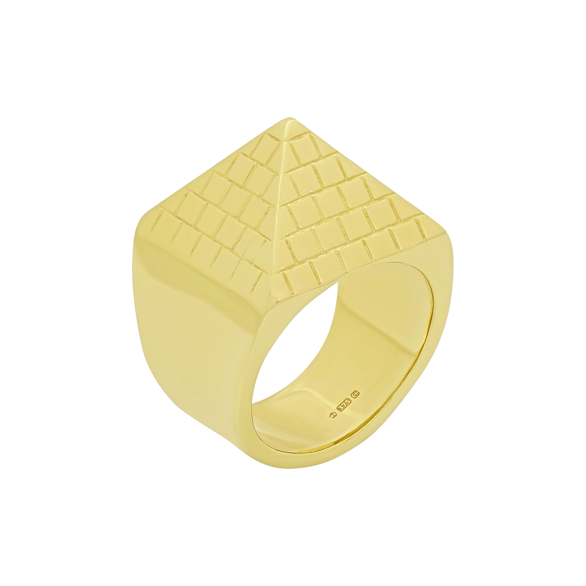 This pre-owned gold pyramid ring is a striking piece of jewellery that combines timeless elegance with bold, geometric design. Crafted from 9ct yellow gold, this ring features a pyramid-shaped centrepiece that exudes sophistication and modernity. The clean lines and sharp angles of the pyramid create a captivating focal point, making it a perfect statement accessory for any occasion. Whether worn as a standalone piece or stacked with other rings, the gold pyramid ring adds a touch of luxury and contemporary flair to your style. Its versatile design makes it suitable for both casual and formal outfits, ensuring it becomes a cherished addition to your jewellery collection.
