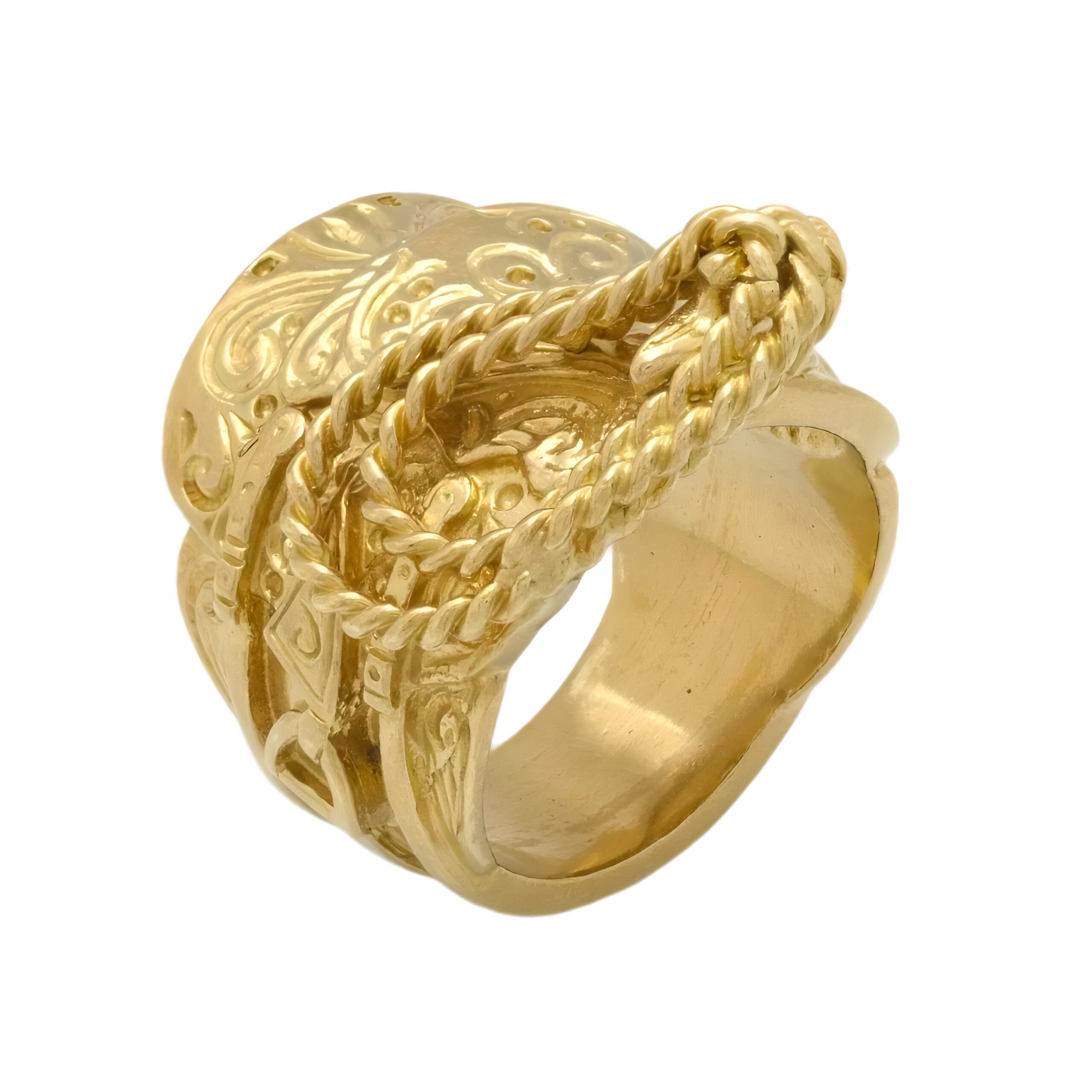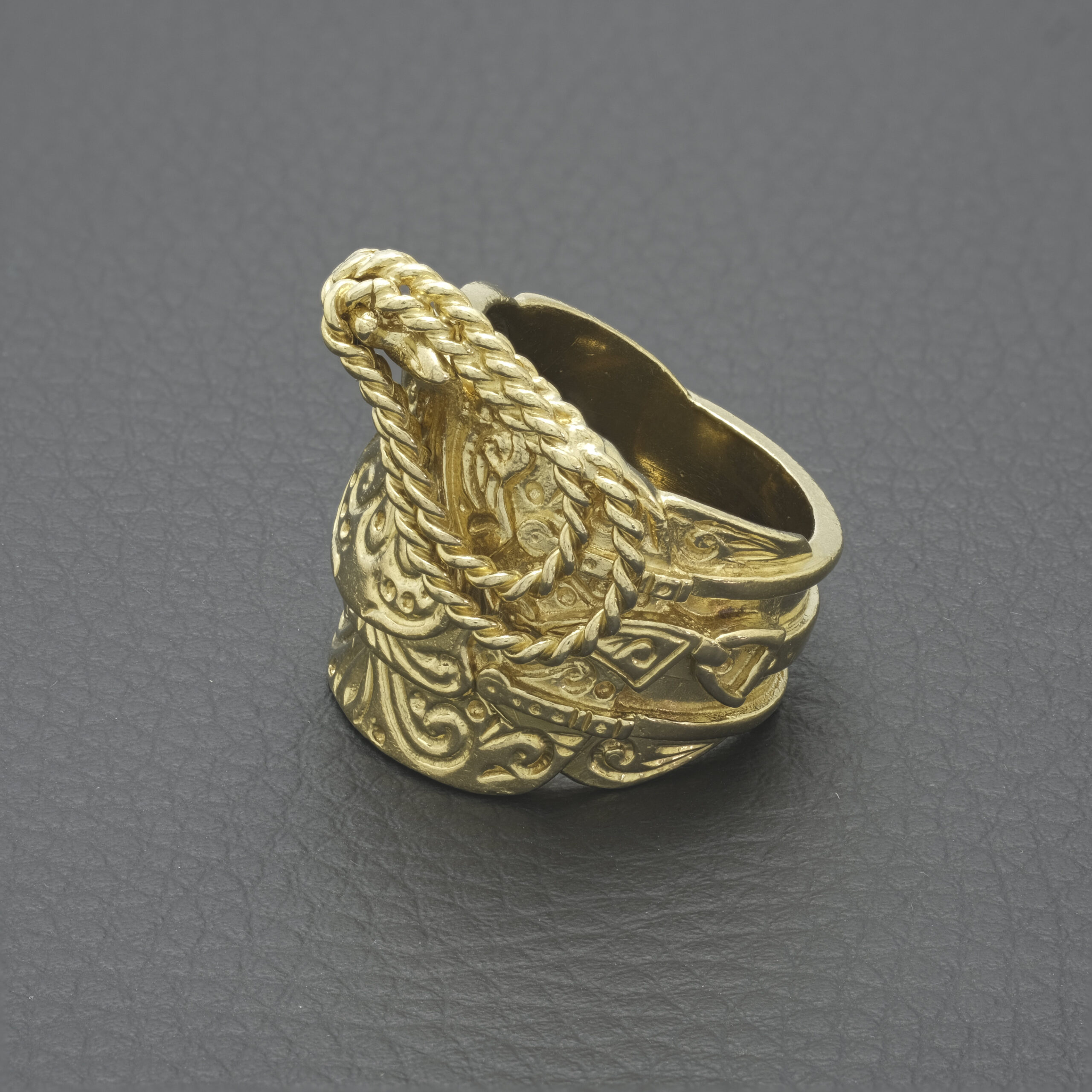 Made from solid 9ct yellow gold, this pre-owned saddle ring is durable for everyday wear. Carefully polished and highly detailed this saddle ring really stands out.