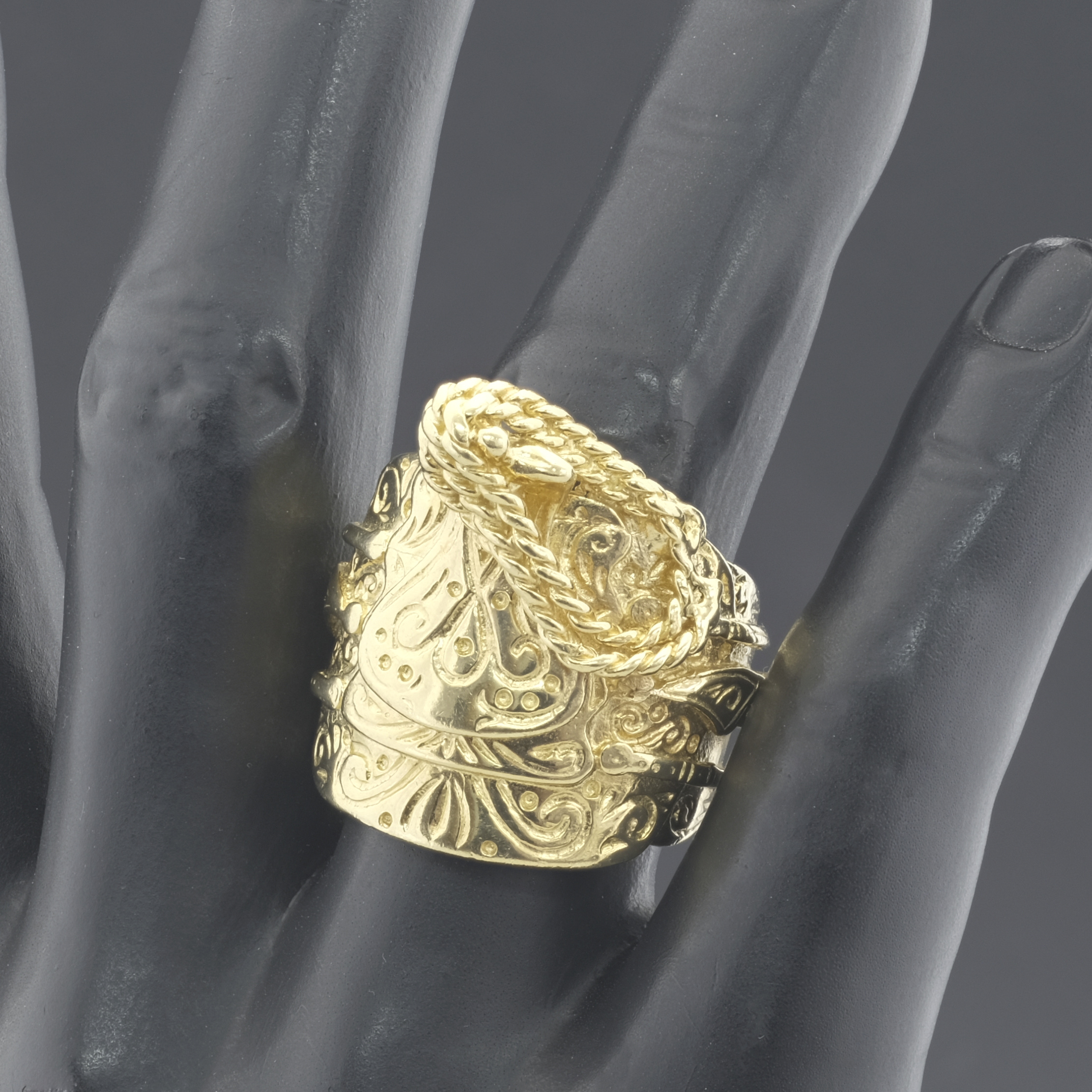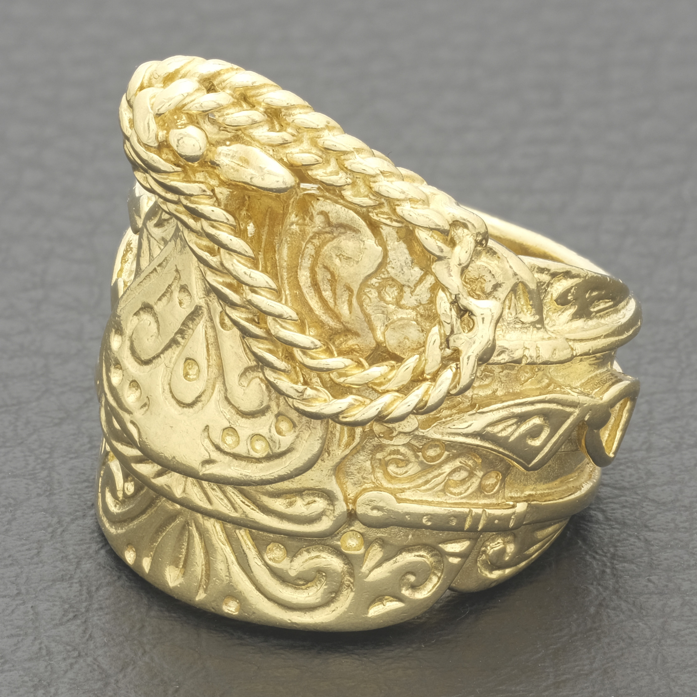 Made from solid 9ct yellow gold, this pre-owned saddle ring is durable for everyday wear. Carefully polished and highly detailed this saddle ring really stands out.