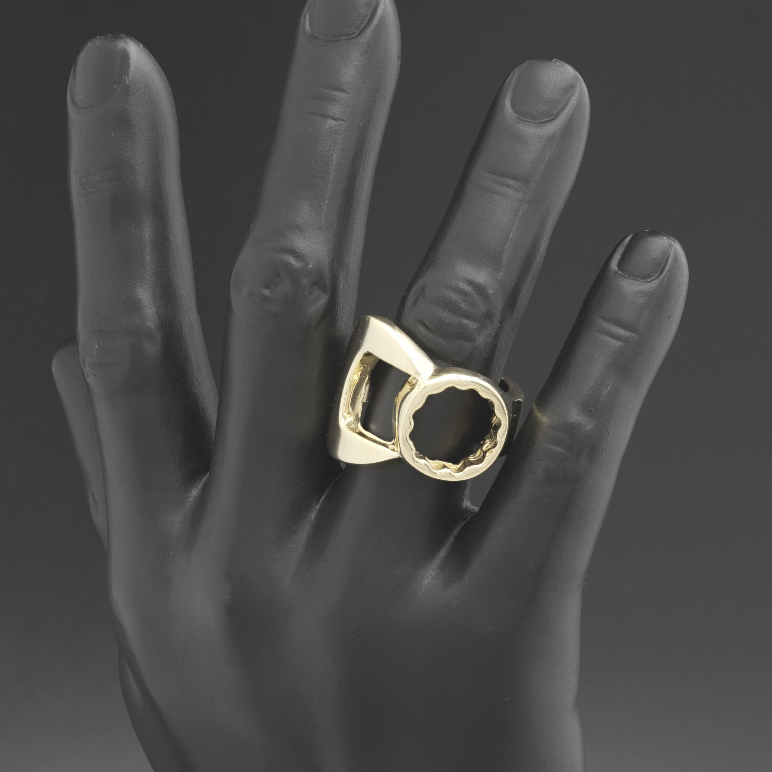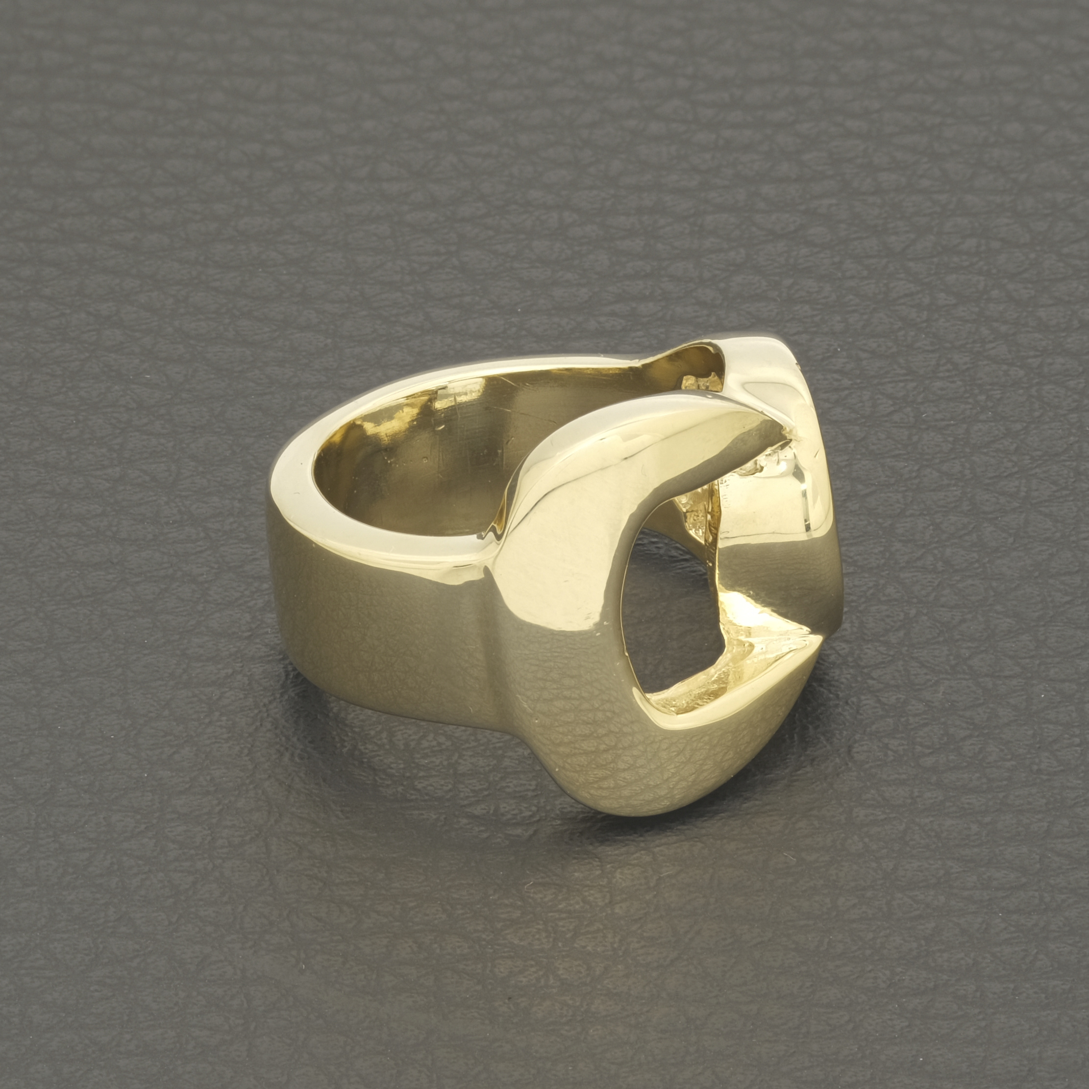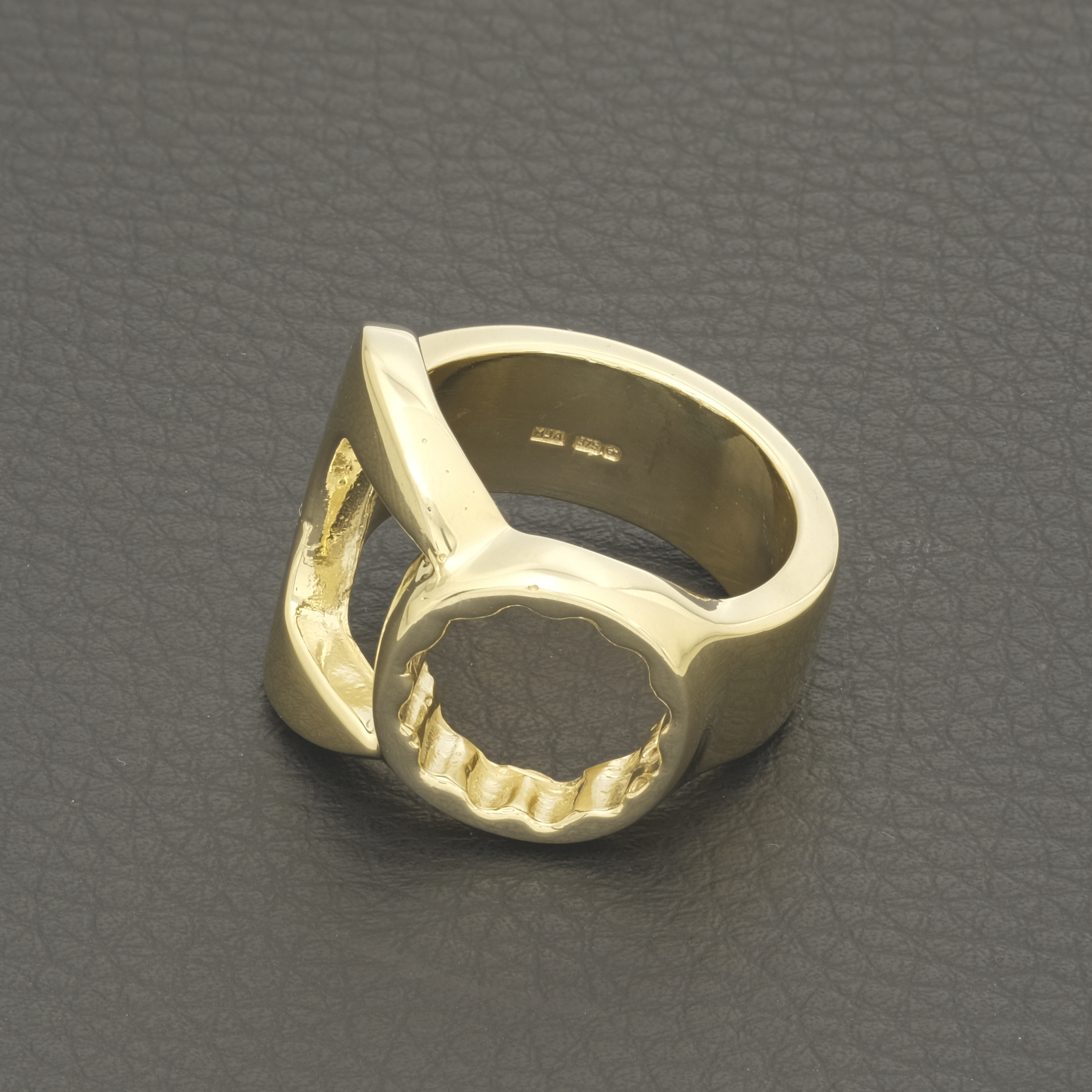 This pre-owned solid gold spanner ring crafted from 9ct yellow gold is a stylish and symbolic piece of jewellery. This unique ring and will surely get you noticed