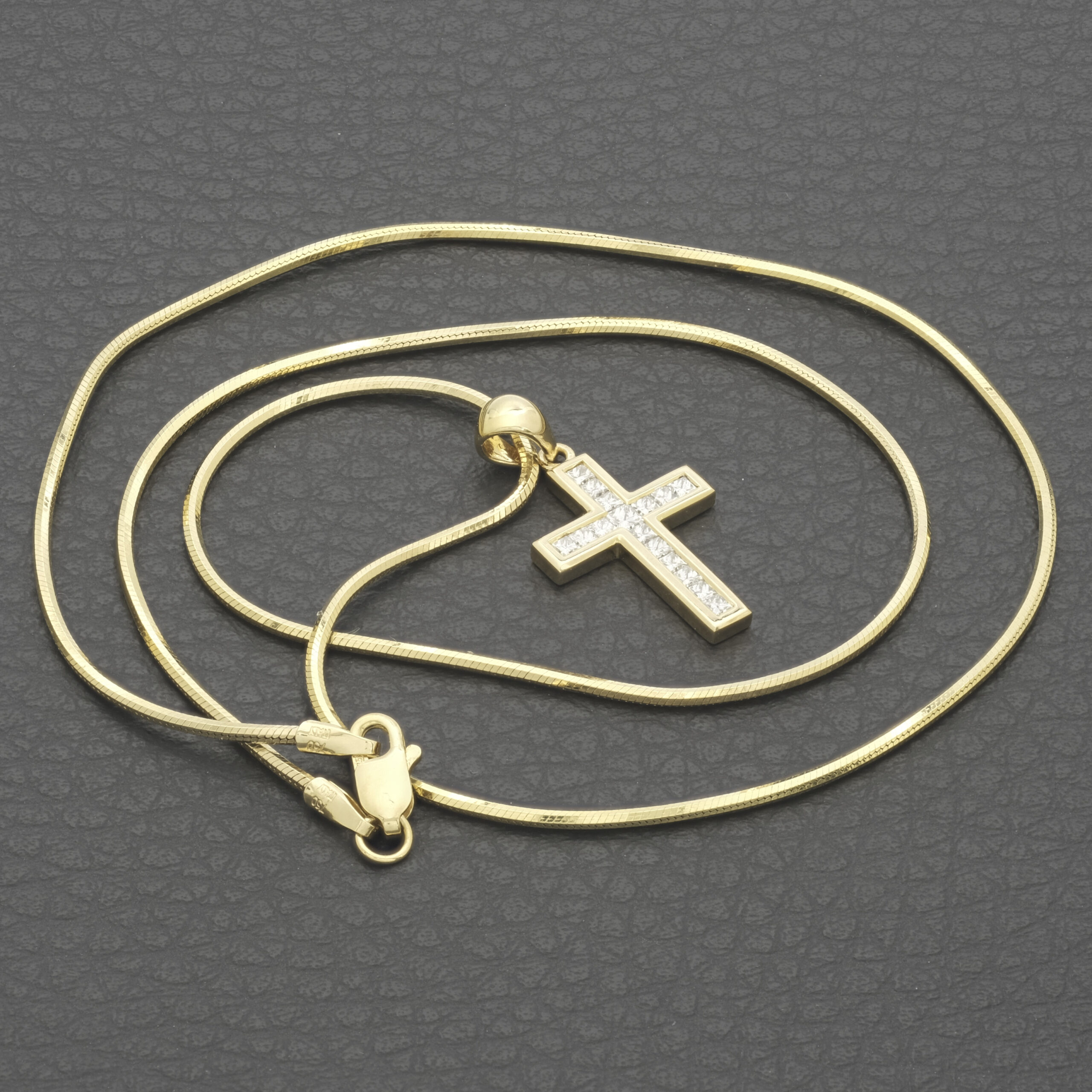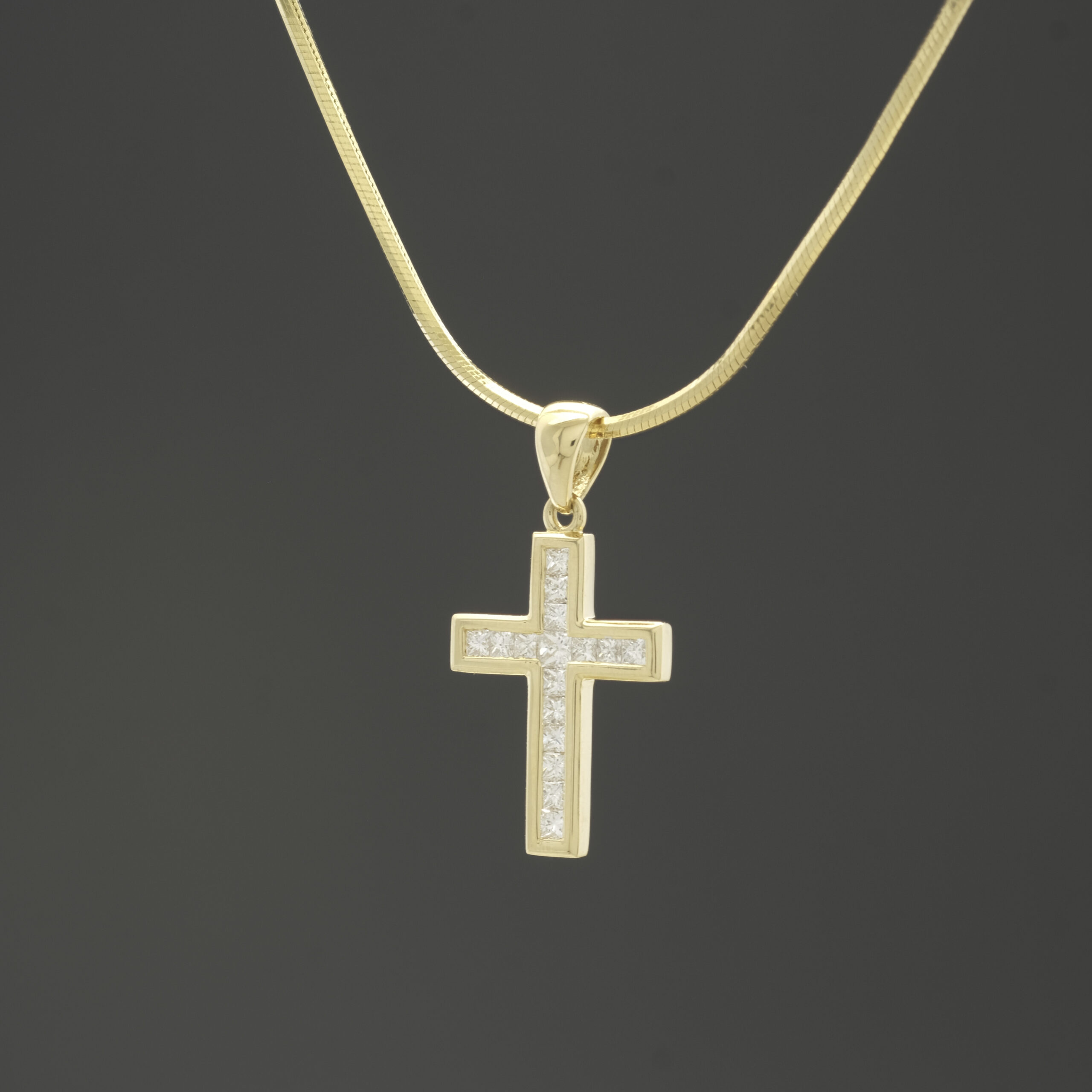 A pre-owned gold diamond cross necklace is a timeless piece of jewellery that combines elegance and spiritual symbolism. Crafted from 18ct yellow gold, the necklace features a beautifully designed cross pendant adorned with sparkling diamonds, adding a touch of sophistication and brilliance. The intricate detailing of the cross highlights the craftsmanship, while the diamonds catch the light, creating a dazzling effect. These diamonds have a total carat weight of 0.42ct, with a colour of G-H and a clarity of VS1-VS2. Perfect for both everyday wear and special occasions, this necklace serves as a meaningful accessory or a thoughtful gift for loved ones.