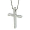 A beautiful, pre-owned 18ct white gold 0.41ct diamond cross pendant, measuring 40mm in height and 28mm in width. This pendant hangs from a delicate 18ct white gold franco chain measuring 18inch in length and 1.5mm in width. This beautiful necklace is suitable for occasional or everyday wear.