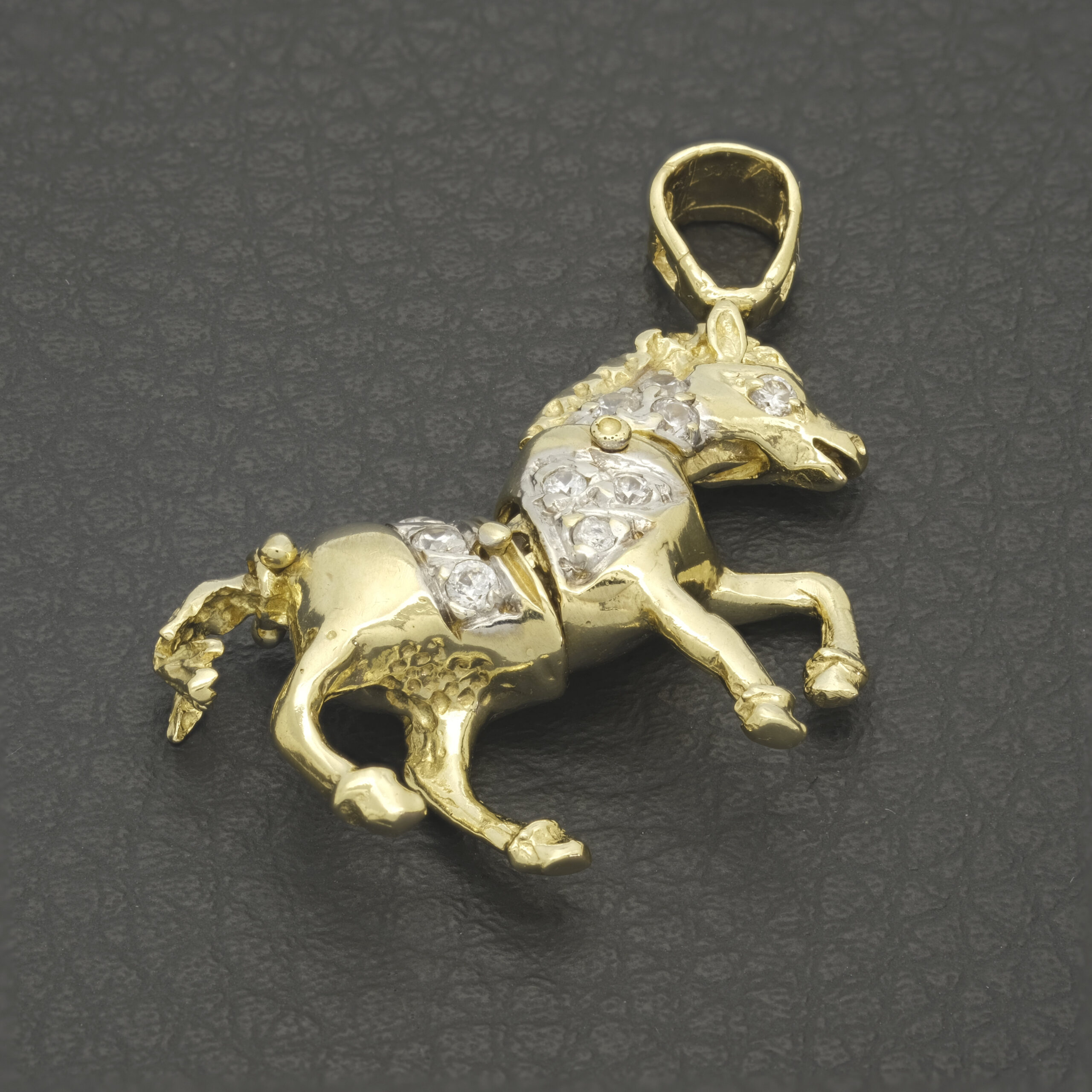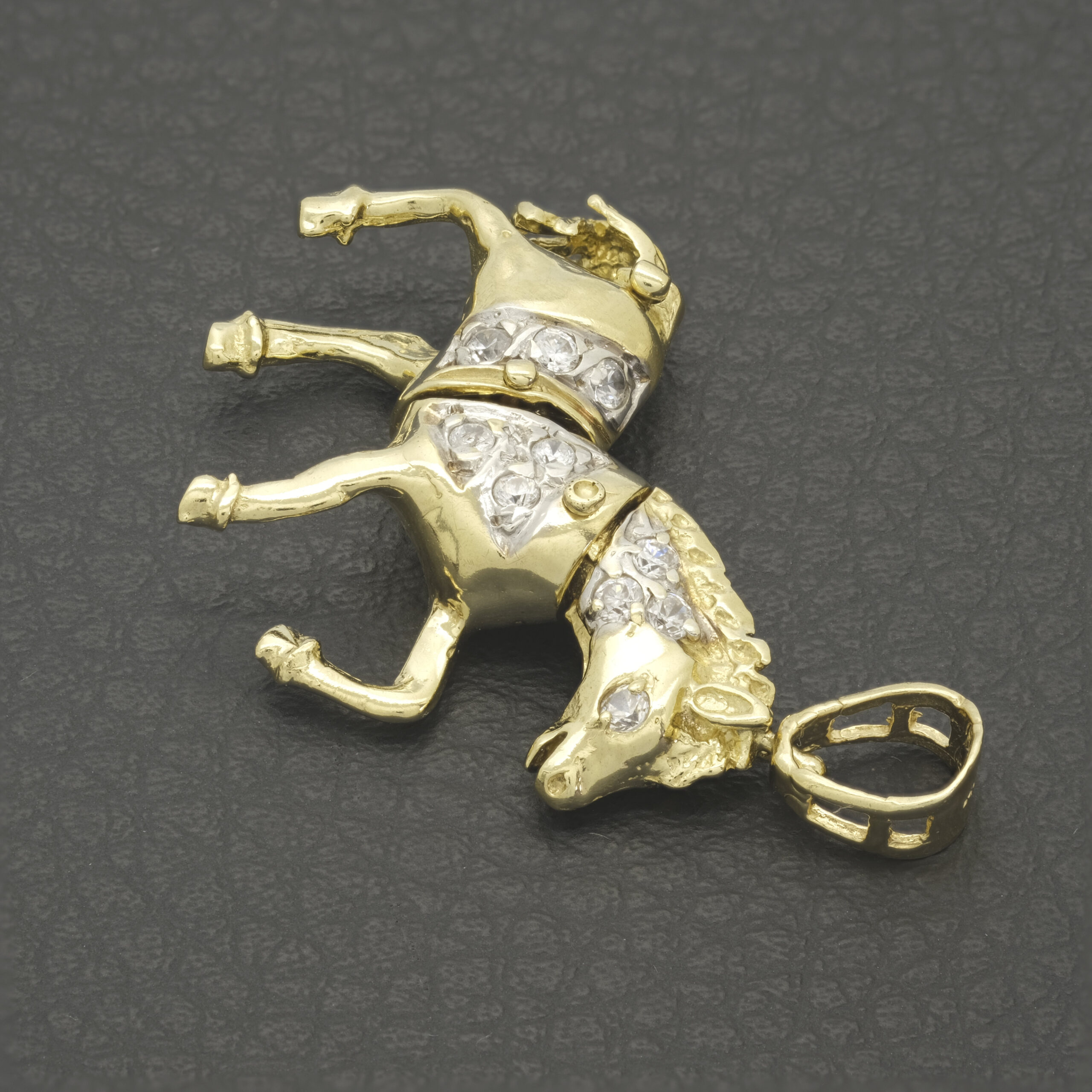 A pre-owned, 9ct yellow gemstone horse pendant that is guaranteed to catch the eye. This pendant measures 30.5mm in width and 33mm in height from the top of the bail to the bottom.