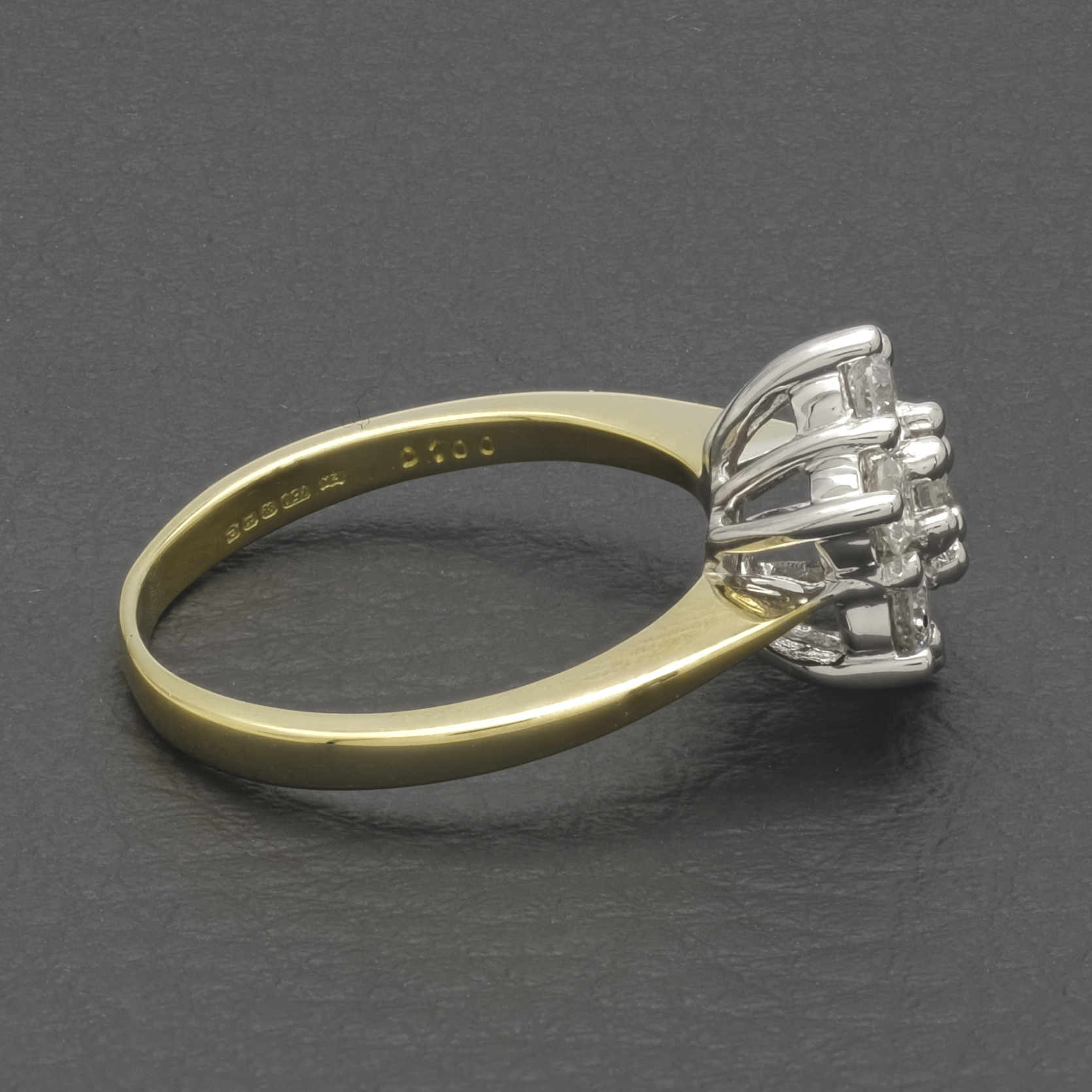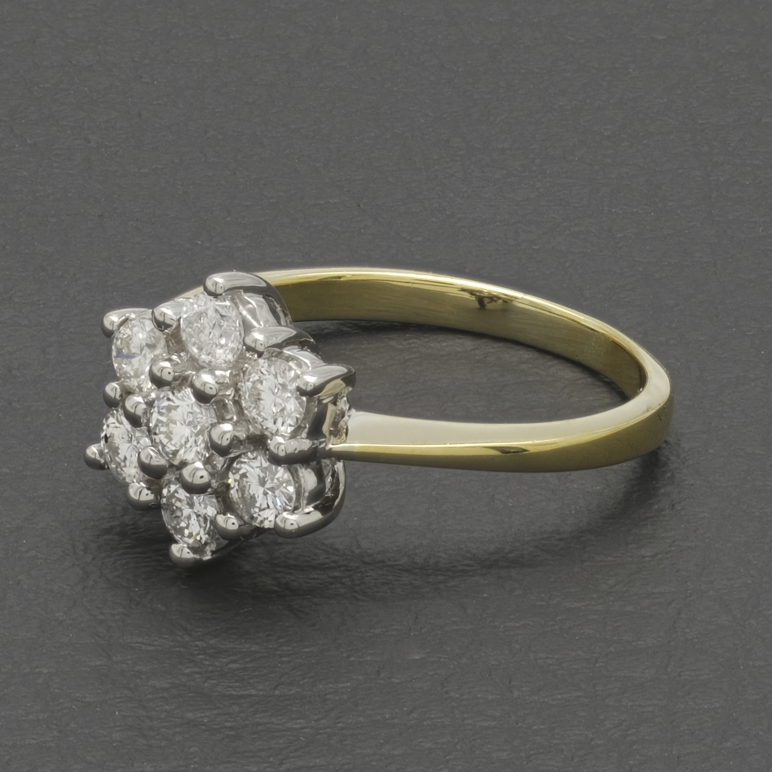 A pre-owned gold diamond cluster ring is a stunning piece of jewellery that exudes elegance and sophistication. Crafted from 18ct yellow gold, this ring features a dazzling arrangement of diamonds meticulously set in a cluster design, creating a brilliant and eye-catching sparkle. The cluster setting enhances the overall brilliance of the diamonds, making the ring appear larger and more radiant. These diamonds have a total carat weight of 1.00ct, with a colour of G-H and a clarity of SI1-SI2. Perfect for special occasions or as a timeless gift, this ring combines classic charm with modern allure, making it a cherished addition to any jewellery collection.