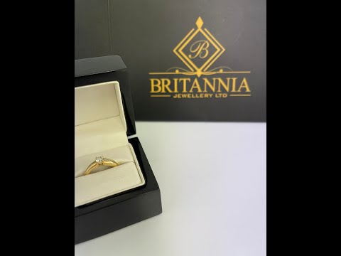 An elegant 18ct yellow gold round diamond solitaire ring. Centring on a round brilliant cut diamond totalling 0.32ct colour I clairty SI. This dazzling diamond is positioned in a four claw set to a round yellow gold mount. Each shoulder is channel set with four round brilliant cut diamonds totalling 0.08cts colour I clarity SI. A beautifully elegant ring that would look well on it’s own or paired with a wedding band.