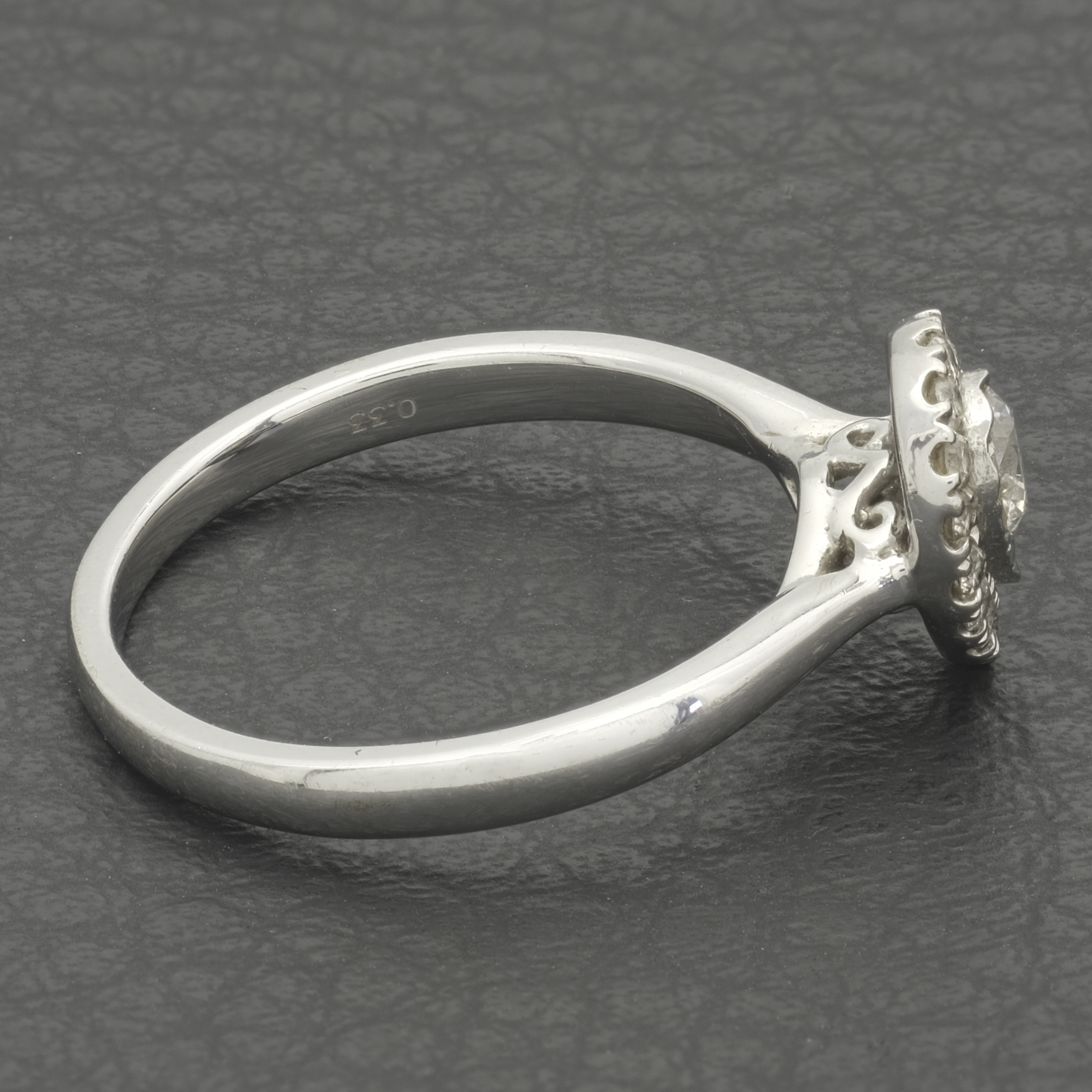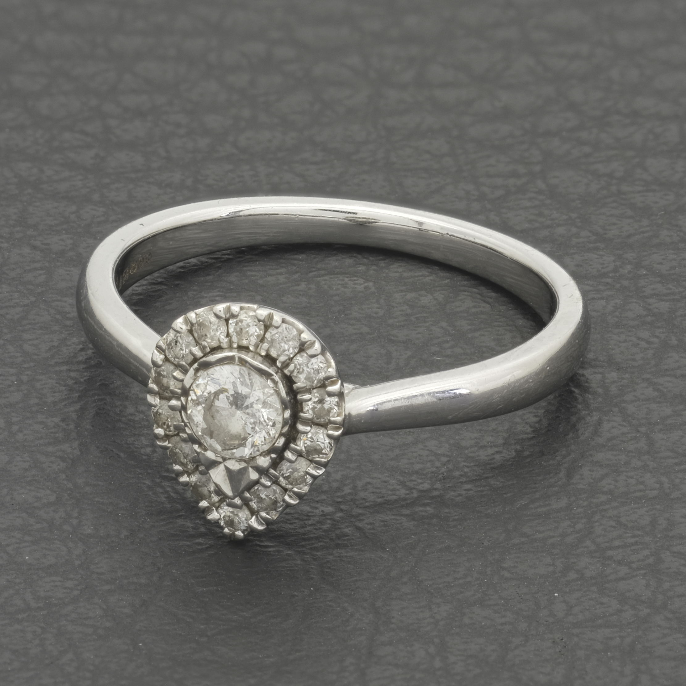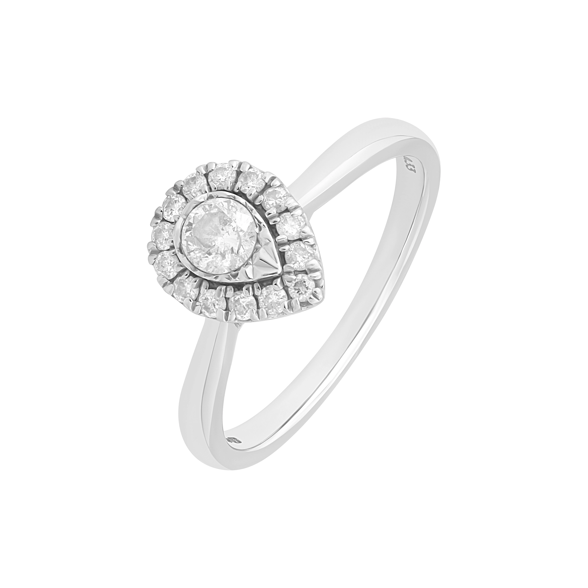 Delight in the elegance of this pre-owned 9ct white gold pear-shaped halo ring. At its centre, a graceful pear-shaped design is beautifully framed by a shimmering halo of brilliant-cut diamonds, enhancing its sparkle and allure. With a total diamond weight of 0.33ct, this ring radiates timeless sophistication and charm. Crafted in sleek white gold, it’s the perfect piece to add a touch of glamour to any occasion or to celebrate a special moment in style.
