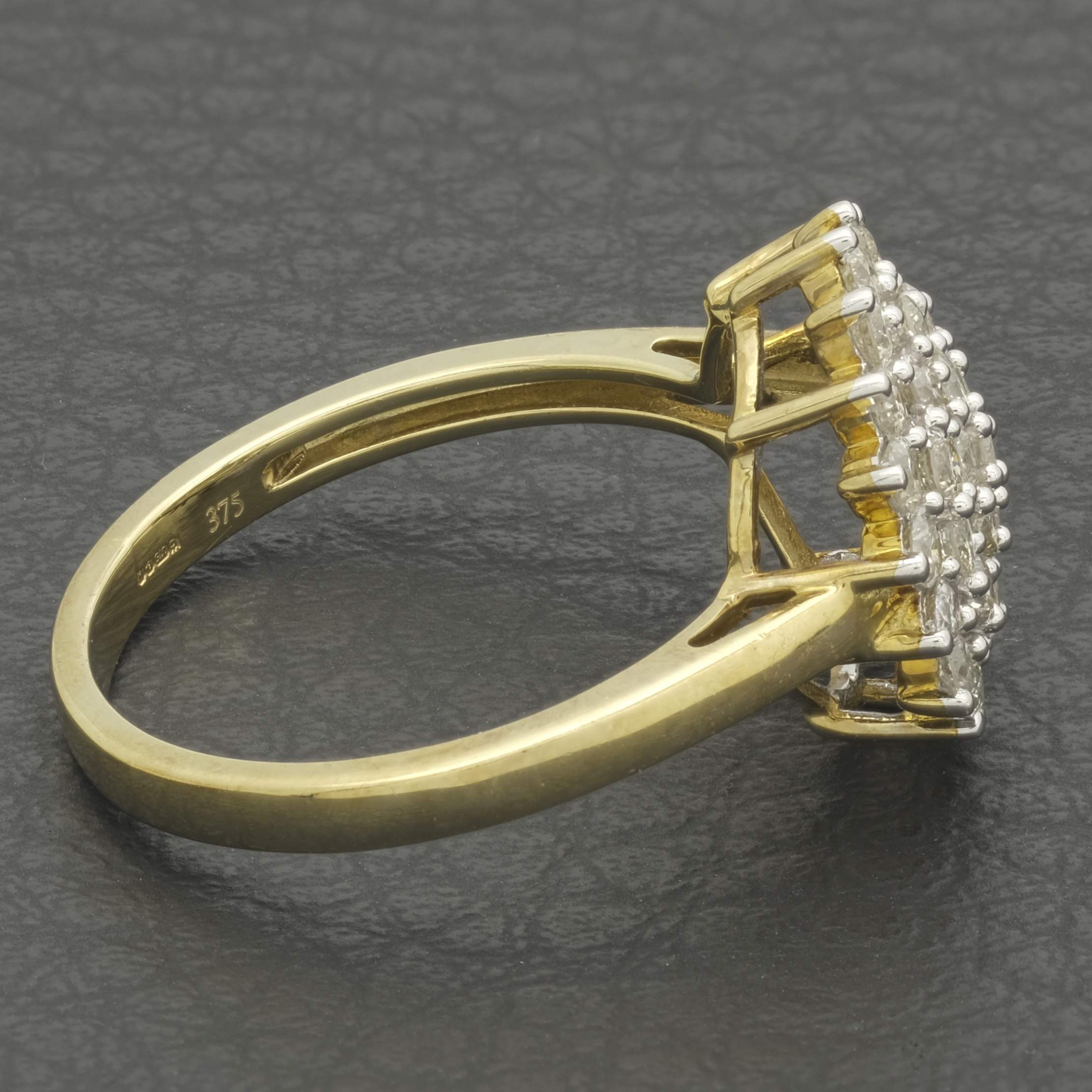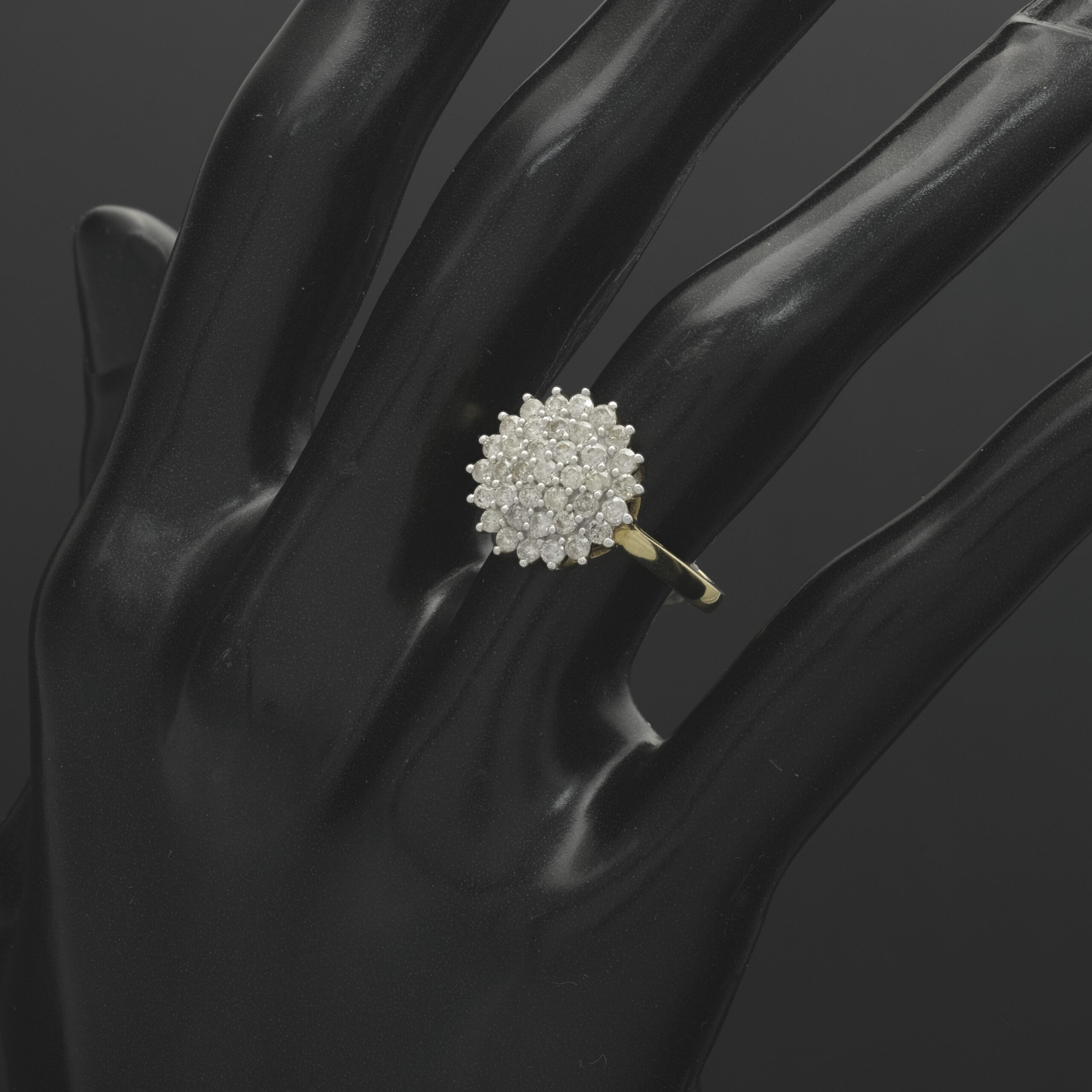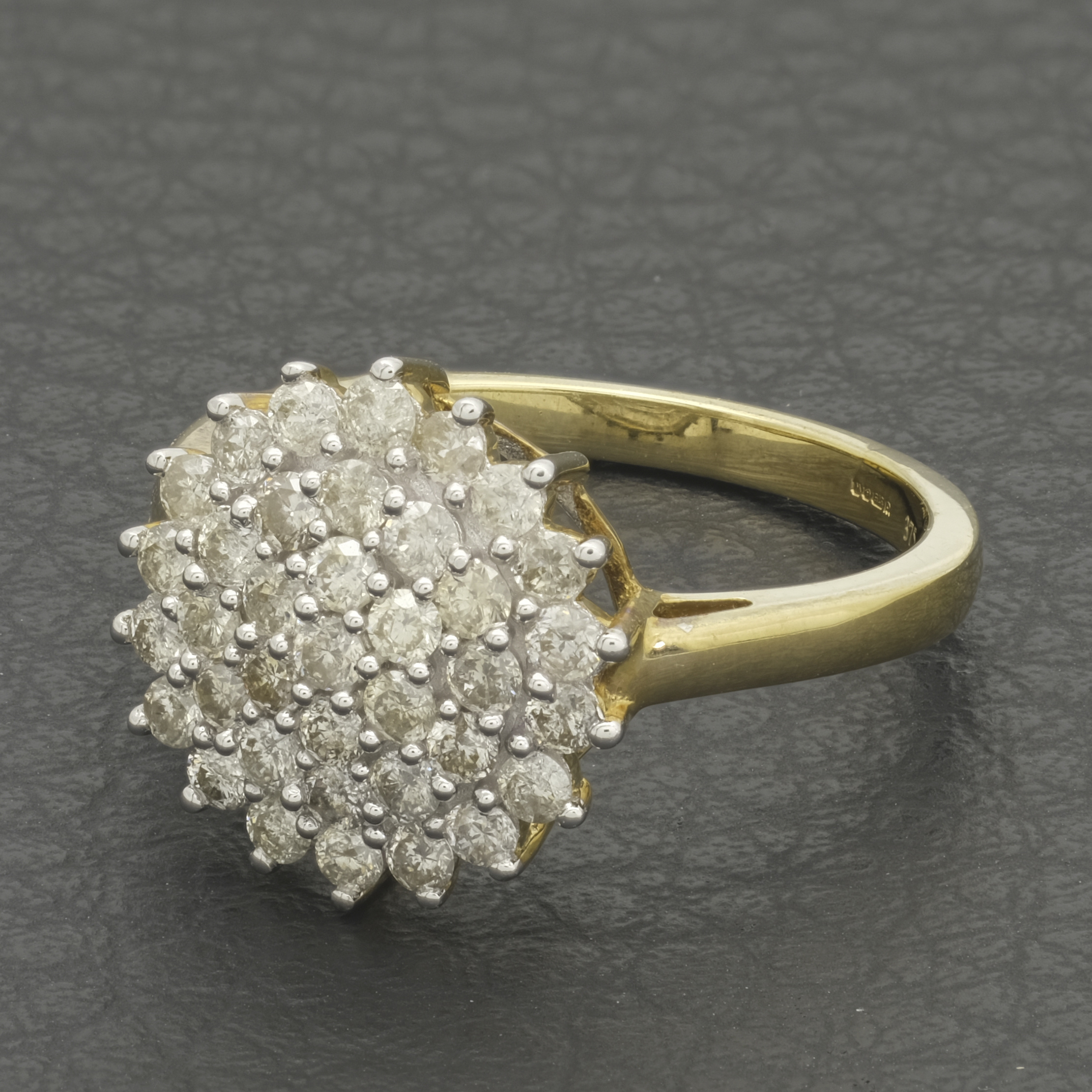 A pre-owned gold diamond cluster ring is a stunning piece of jewellery that exudes elegance and sophistication. Crafted from 9ct yellow gold, this ring features a dazzling arrangement of diamonds meticulously set in a cluster design, creating a brilliant and eye-catching sparkle. The cluster setting enhances the overall brilliance of the diamonds, making the ring appear larger and more radiant. These diamonds have a total carat weight of 0.74ct, with a colour of J-K and a clarity of SI1-SI2. Perfect for special occasions or as a timeless gift, this ring combines classic charm with modern allure, making it a cherished addition to any jewellery collection.