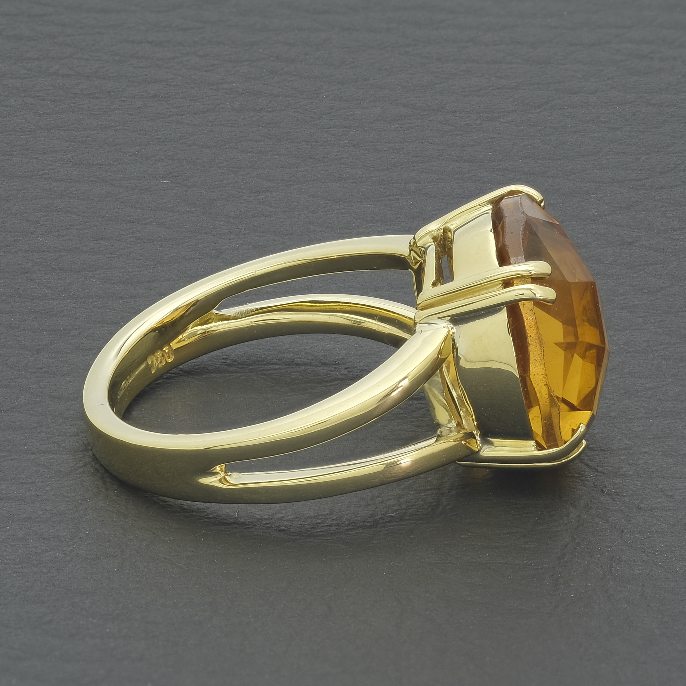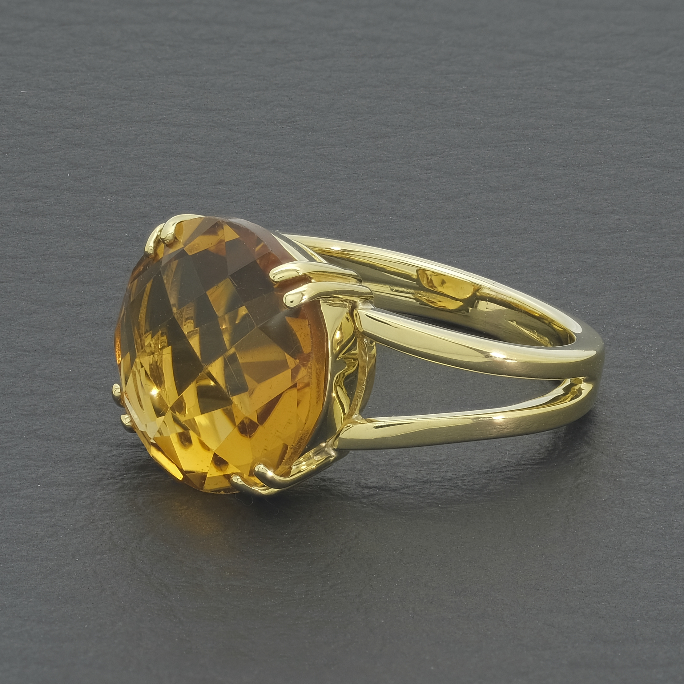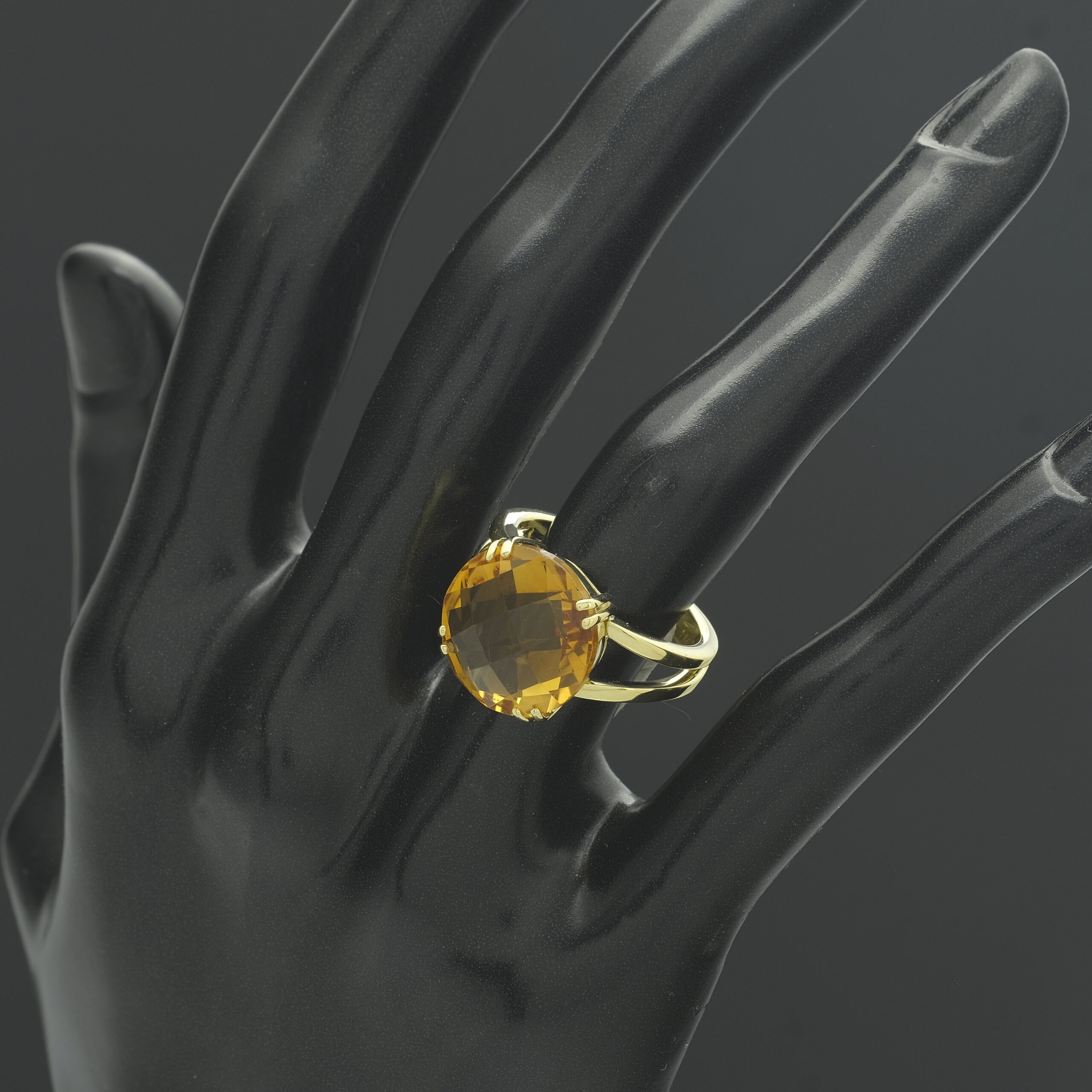 A beautiful, pre-owned 18ct yellow gold citrine ring. This citrine ring has a giant citrine stone in a 4 claw setting. The perfect ring for a special occasion, giving an elegant look.